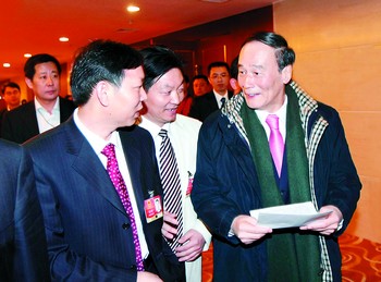 昨日下午4時許,王岐山參加完湖南代表團的討論后,黃志明將準備已久的《關(guān)于成立國有社保銀行的建議》交到王岐山的手中。“這是我一個基層代表的建議,希望對國家有所幫助,并請多多指導!”黃志明激動地說。“謝謝你,我會認真看的。”王岐山接過黃志明的建議笑著表示。