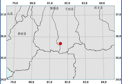 據測定,此次地震震中位于北緯 35.4°, 東經 81.5°,目前還沒有人員傷亡和財產損失的報告。