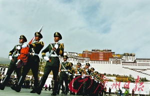 2001年7月29日晚,一聲巨響,布達(dá)拉宮白宮頂部一座五彩寶幢突遭雷擊。官兵們聞聲立即趕到現(xiàn)場(chǎng),冒著生命危險(xiǎn),在雷雨交加中用塑料薄膜把殘損的寶幢包嚴(yán)實(shí)。為防止再發(fā)生意外,官兵們雨夜堅(jiān)守了6個(gè)多小時(shí)。