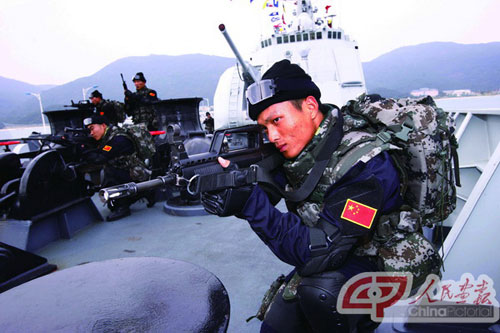 2005年,“和平使命—2005”中俄聯(lián)合軍演正式在俄羅斯的符拉迪沃斯托克和我國(guó)山東半島及附近海域拉開帷幕,為期八天的演習(xí)跨越兩國(guó)陸、海、空域,共分“海上封鎖作戰(zhàn)、兩棲登陸作戰(zhàn),強(qiáng)制隔離作戰(zhàn)”三個(gè)階段,向外界展示了強(qiáng)大的綜合作戰(zhàn)能力,顯示人民海軍與外國(guó)海軍合作的層次、規(guī)模和難度不斷提高。