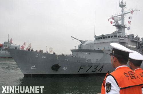 在應邀前來參加海上檢閱活動的21艘外國艦艇中,法國海軍“葡月”號導彈護衛艦是來訪中國次數最多的。它曾先后7次訪問中國,2002年還對青島進行過友好訪問。