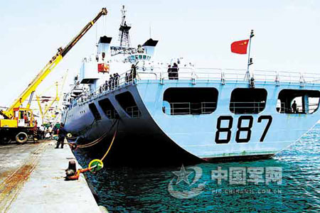 補給期間,中國水產總公司也門分公司專程到亞丁港供給了“微山湖”艦官兵,并帶來了20噸水產品。中國水產公司駐西亞地區總代表劉佳介紹說,考慮到軍艦上淡水有限,他們對這些水產品進行了去鱗、去鰓、去內臟等精加工,解凍后即可烹調食用。
