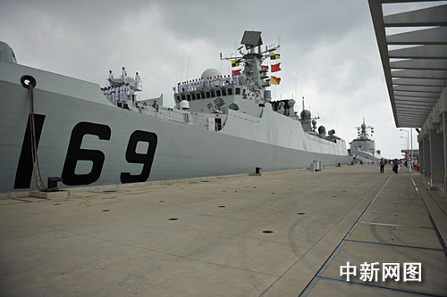 中新網三亞四月二十八日電 (記者 孫自法 唐偉杰)中國海軍遠赴印度洋亞丁灣、索馬里海域執行并圓 滿完成護航任務的首批艦艇編隊,二十八日上午奏凱而歸,順利返回海南三亞。