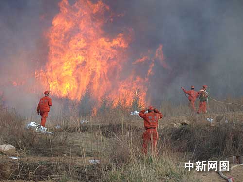 中新網(wǎng)5月2日電(增平)山西省交城縣會立鄉(xiāng)翟家莊村二十八日下午發(fā)生的森林火災(zāi)蔓延至今。今日上午,林區(qū)現(xiàn)場明火一度被撲滅。十二時左右,一陣大風(fēng)中突然引起余火復(fù)燃,青羊溝村附近和后莊的森林山火情緊急,現(xiàn)場形勢又顯嚴(yán)峻。千余人又投入緊張的現(xiàn)場撲火行動中。