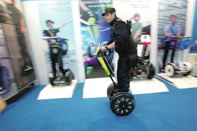 在2008年北京奧運(yùn)會(huì)期間,一種可以站著駕駛的兩輪小車給觀眾留下了深刻印象。在此次展會(huì)上,這種名叫segway的小車特別推出了警用版。警用版的segway具備視野開(kāi)闊、機(jī)動(dòng)靈活等特點(diǎn),一旦發(fā)生突發(fā)事件,特別是在擁堵的路況下,使用segway可以在最短時(shí)間內(nèi)到達(dá)現(xiàn)場(chǎng)。