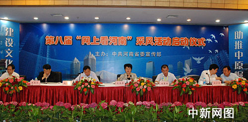 中新網(wǎng)5月25日電 5月25日,以“建設(shè)文化強省,助推中原崛起”為主題的第八屆“網(wǎng)上看河南”采風(fēng)活動在河南省會鄭州啟動。”來自50多家中央和地方重點新聞網(wǎng)站及部分知名商業(yè)網(wǎng)站的負(fù)責(zé)人和采編人員組成兩隊分別趕赴南、北兩線進行采風(fēng),南線采訪平頂山、許昌、商丘、開封4市,北線采訪洛陽、焦作、鶴壁、安陽4市。