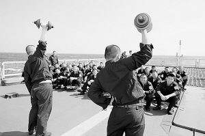 護航編隊艦艇的擴音器、對講機里,幾乎每天都能傳出戰斗號角般的聲音。我們的官兵,就是在如此高度緊張的戒備氛圍中度過一百多天護航生活的。