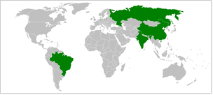 “金磚四國”(BRIC)包括巴西、俄羅斯、印度和中國。BRIC恰好是上述四國英文名稱首字母縮寫,因其發音類似“磚塊”一詞,故得名“金磚四國”。