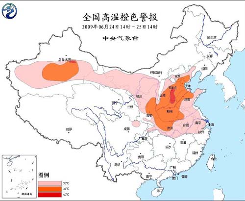 預計,今天中午到明天中午,華北大部、黃淮、江淮、江漢、江南東北部及陜西大部、寧夏大部、甘肅北部、內(nèi)蒙古西部、新疆南疆盆地等地有35℃以上的高溫,其中,河北中南部、京津、山西南部、山東西部、陜西東南部、河南、湖北北部以及南疆盆地等地的部分地區(qū)最高氣溫可達37~39℃,河北西南部、河南北部、南疆盆地等地局部溫度可達40℃。
