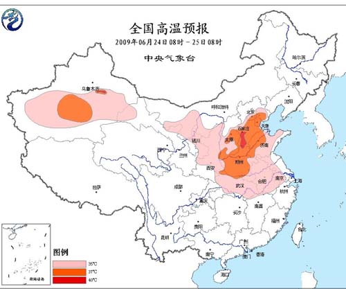 中新網(wǎng)6月24日電 據(jù)中國氣象局網(wǎng)站消息,今天白天,北京、天津、河北、河南以及山東等省成為太陽的重點(diǎn)“烘烤”對(duì)象,中央氣象臺(tái)今晨繼續(xù)發(fā)布高溫預(yù)報(bào),預(yù)計(jì)上述地區(qū)今天的最高氣溫將到37~39℃,局地可達(dá)40℃。據(jù)中央臺(tái)專家介紹,這樣的高溫天氣會(huì)隨著一股南下的冷空氣,有望在26日結(jié)束。