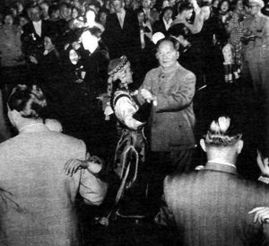 毛澤東的到來,往往能使舞場的氣氛為之一變。這種變化并不表現(xiàn)為外在的場面的熱烈,而是人們內(nèi)心的、精神的變化。正如一位舞會參加者描述的那樣:“舞場的氣氛也更活躍、更莊重,滿場的人都興高采烈,都在微笑,但卻聽不到任何嘈雜、喧嘩。”