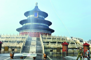 昨天下午,在市游園指揮部和市公安局國慶游園活動保衛(wèi)指揮部的統(tǒng)一組織下,崇文區(qū)政府、崇文區(qū)游園安保分指揮部在天壇公園展開了歷時50分鐘的可疑物排查、“大人流”疏控、滅火救援等突發(fā)事件處置演練。