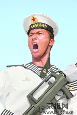 歷史正在考驗,平時在家里嬌生慣養,衣來伸手、飯來張口的這批“90后”青年,能否完成如此重大而又艱巨的任務,能否吃得這日曬雨淋之苦,能否在世界面前樹立新一代年輕水兵形象,履行揚我國威、震我軍威的錚錚誓言,我們從訓練場上已得到了答案。