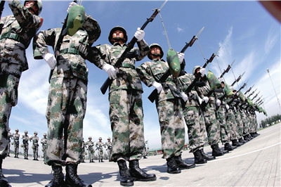 “啪!啪!啪!”提槍!握槍!劈槍!隨著洪亮的口令聲,預(yù)備役方隊(duì)隊(duì)員手中的八一式自動(dòng)步槍,節(jié)奏分明、整齊劃一,瞬間以排山倒海之勢指向前方。在60周年國慶大閱兵中,預(yù)備役方隊(duì)是14支徒步方隊(duì)中唯一一支端槍受閱的方隊(duì)。
