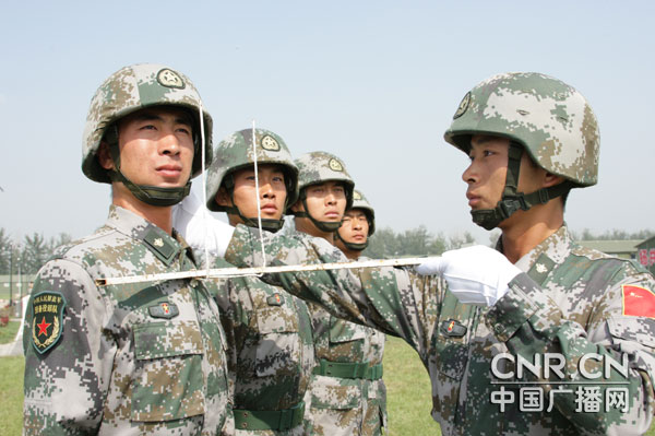 “向右擺頭45度,帽檐前緣與眉同高。”“兩腳分開60度,向前踢腿時,腳掌距離地面60厘米。”“向右看到底看什么地方……”這組看起來枯燥乏味的數字 、簡單易學的動作,卻并不容易精確掌握做到,并直接影響著閱兵訓練的全局(方隊的整齊一致)。