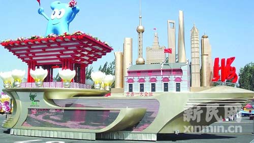 “騰飛上海”彩車亮相