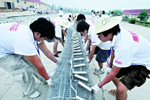 折疊后還是不行,一方面太沉,整幅網(wǎng)幕重4至5噸,故分成9小塊,每塊重500公斤;另一方面不能保證煙花毫發(fā)無(wú)傷,只要車顛簸,網(wǎng)幕還是會(huì)磕碰。