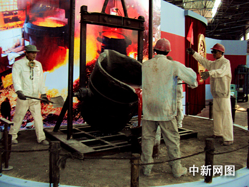 記者9月30日前往沈陽市鐵西區鑄造博物館采訪,那里不僅有第一枚國徽的模型,還有一組蠟像,形象生動地再現了當年鑄造工人制作第一枚國徽時的情景。