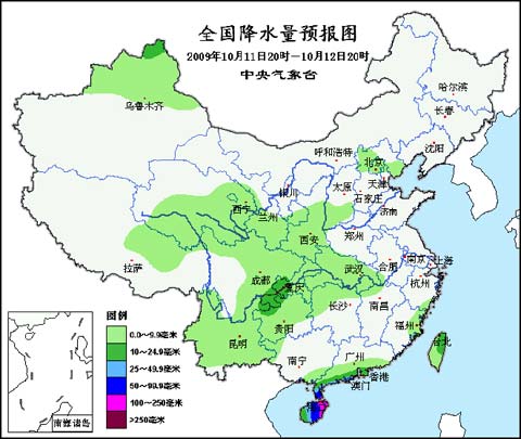 11日20時至12日20時,新疆北部、西藏東北部、青海東部和南部等地有小到中雨(雪)或雨夾雪;華北北部和西南部、西北地區(qū)東南部、江漢、江南西北部、西南地區(qū)大部、廣西東南部、廣東南部、海南、福建東部、臺灣等地有小到中雨或陣雨,其中,廣東西南部、海南大部等地有大到暴雨,海南東部的部分地區(qū)有大暴雨。甘肅東部、陜西北部、華北中南部、黃淮西部、江淮大部、江南大部等地有輕霧,其中甘肅東部、山西南部有霧。新疆北部、內(nèi)蒙古中東部、東北北部有4~6級偏北風。受“芭瑪”和冷空氣的共同影響,南海北部和中部海域、北部灣海域將有6-8級大風,部分海域的陣風可達9-10級。另外,東海南部海域、臺灣海峽、臺灣以東洋面和以南海域將有6-7級、陣風8級的東北風。