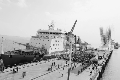 10月11日上午10時許,我國第26次南極科學考察隊乘坐“雪龍”號極地科考船,從上海浦東外高橋的中國極地考察國內基地出發,啟程前往南極。