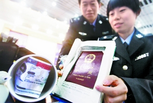 針對偷渡犯罪的猖獗,邊檢總站加大培訓民警識別偷渡人員的力度,同時采取高科技檢測手段識別偽假證件。記者在現(xiàn)場看到,目前民警使用的最新式檢查護照簽證儀器,最小只有鼠標大小,可隨身攜帶,還有快速“刷”護照的證件閱讀機,民警把護照在機器上一“刷”,讀取信息同時就能識別護照上的防偽標識。