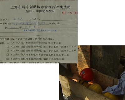 張軍說,在這輛面包車上,他收到了一張以涉嫌無證運營擅自從事出租汽車經(jīng)營為理由的《車輛暫扣通知單》,按照相關(guān)條例被處以罰款一萬元。處罰他的上海閔行區(qū)交通行政執(zhí)法大隊聲稱,他們掌握有錄音證據(jù),證明張軍和那名男子談過車費的問題,而這正是他們處罰張軍的依據(jù)。但張軍告訴記者,當(dāng)時那名男子上車后曾多次表示要給他錢,但都被他回絕。