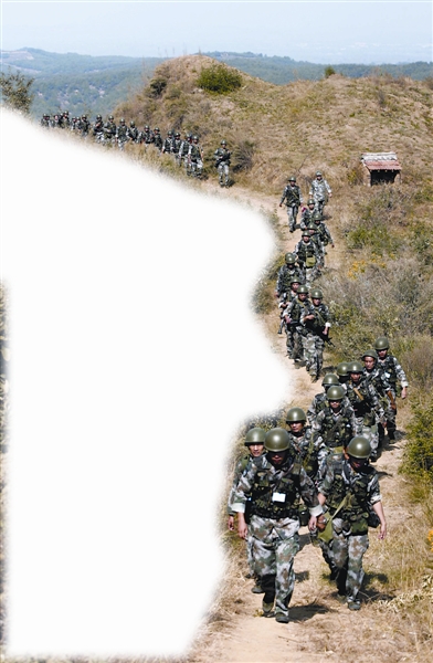 此次演練歷時5個多小時,記者隨駐漢空降兵某部黃繼光英雄連所在營向目標地進發,徒步30公里,穿越山區密林,目睹了一場實兵機動對抗演練。