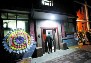 夜色還未褪盡,記者來(lái)到位于航天橋航天大院內(nèi)的錢學(xué)森靈堂外。位于一層的靈堂此時(shí)已是燈影幢幢,單元門外擺放的花籃、花圈并沒有被撤走,依舊簇?fù)碇睾蛟陟`堂門外。