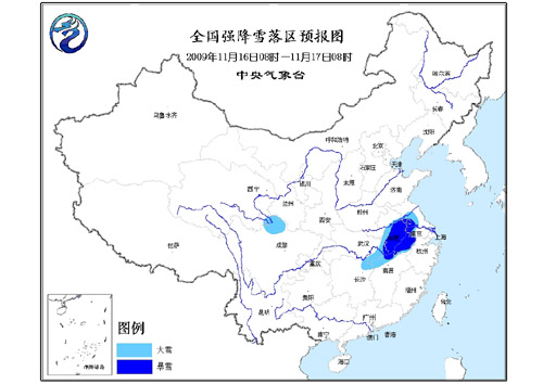 中新網11月16日電 中央氣象臺16日06時繼續發布暴雪橙色警報:受冷暖空氣的共同影響,預計今天白天到夜間,川西高原北部、湖北東部、湖南東北部、安徽中部和南部、江蘇中南部偏西地區以及江西北部等地有大雪,其中,安徽中南部、江蘇中部偏西的部分地區以及湖北東南部和江西北部的局部地區有暴雪,降水量一般有10~15毫米,局地可達20毫米以上。另外貴州中部偏西的局部地區有凍雨。
