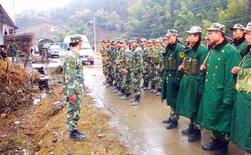 益陽至安化有130多公里,道路交通不便,天氣寒冷。在克服諸多不便之后,部隊于17時30分開進清塘鎮梧桐村。另一路由安化縣武警中隊派出的隊伍也趕到了現場。