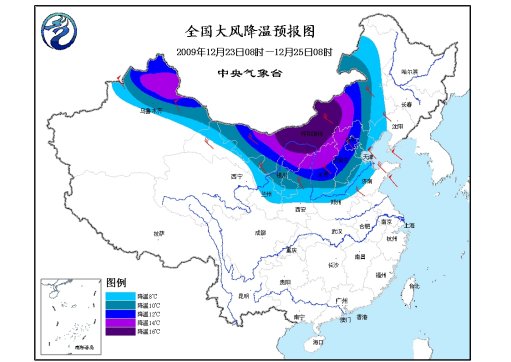 一番降溫過(guò)后,明天(24日)早晨,新疆北部的部分地區(qū)最低氣溫將從目前的-10~-20℃下降到-30~-35℃。24日和25日早晨,內(nèi)蒙古中西部部分地區(qū)、陜西北部、山西北部、河北西北部最低氣溫將下降到-24~-30℃,局地可達(dá)-30~-35℃。