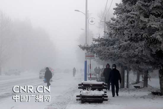 由于極端低溫,地面水蒸氣遇冷立即凝結(jié),造成大霧天氣。惡劣天氣嚴(yán)重影響了人們出行。呼倫貝爾海拉爾區(qū)交巡警大隊(duì)副隊(duì)長(zhǎng)李剛告訴記者:“現(xiàn)在全市每天有一半的警力上路,提醒所有車輛白天也必須打開(kāi)車燈,強(qiáng)制車輛降速慢行。”(記者劉源源 呼倫貝爾臺(tái)記者左珍 馬麗君)