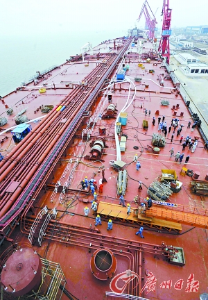 國產巨無霸油輪將首航 排水量是美國航母3倍(圖)