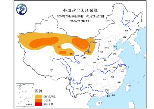 氣象部門預計,3月下旬北方地區將有1~2次沙塵天氣過程,主要影響內蒙古中西部、西北地區北部和南疆盆地;4~5月北方地區沙塵天氣過程次數可能有6~9次,接近近十年同期平均次數8.6次,但比2009年同期多。
