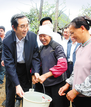 檢查指導期間,馬飚向隨行的自治區(qū)有關部門領導和百色市、那坡縣的負責同志傳達了溫家寶總理關于進一步做好抗旱救災工作的重要指示精神,部署當前工作。他指出,今年春節(jié)期間,中共中央政治局常委、國務院總理溫家寶深入我區(qū)河池、百色等老區(qū)檢查指導抗旱救災工作,對做好廣西抗旱救災工作作出了重要指示。全國“兩會”剛結束,溫總理又親赴云南指導抗旱救災工作,并在3月20日晚上主持召開了抗旱救災工作座談會,對云南、廣西、貴州三省區(qū)抗旱救災工作提出明確要求。我們一定要按照溫總理的要求,進一步做好抗旱救災工作,不惜一切代價保證群眾生活用水,以實際行動回報中央領導同志的關懷,讓黨中央放心,讓老百姓安心。