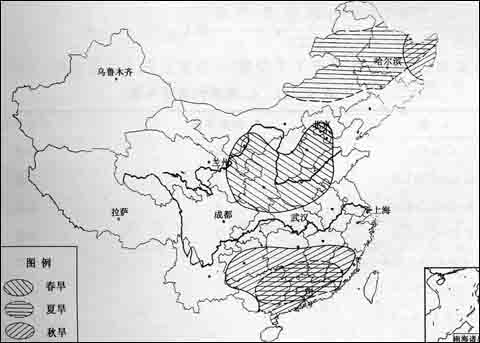 2007年我國年降水總量接近常年,但降水空間分布不均。與常年比較,西多東少,其中西北地區中西部明顯偏多、東部地區中間(淮河流域)偏多、南北偏少,其中北京、內蒙、黑龍江、江西、湖南、廣東等地較常年偏少1~3成,發生了不同程度的干旱。年內我國部分地區發生了大范圍、持續性的嚴重干旱,主要的干旱事件有:華北、西北、黃淮部分地區發生大范圍春旱,四川盆地出現初春旱;內蒙古、遼寧和吉林初夏旱嚴重,黑龍江遭遇歷史罕見夏旱;江南、華南大部分地區7月至8月上旬降水持續偏少,伏旱嚴重;9月上旬至12月中旬,江南、華南又發生了50年一遇特大秋旱連初冬旱。2007年,受旱較重的省(區)有:黑龍江、內蒙古、吉林、寧夏、湖南、江西、河北、河南、陜西等。總體來看,2007年,我國干旱范圍較大,局地干旱非常嚴重;全國因旱受災面積多于1991年以來的平均值。