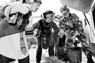 武警云南總隊在前期派出千余名官兵參與全省抗旱救災(zāi)的基礎(chǔ)上,又調(diào)集各支隊灑水車,增派12輛大型高原運水車和高原高壓水炮車,突擊焊制了30個大容積箱式儲水罐投入救災(zāi)。
