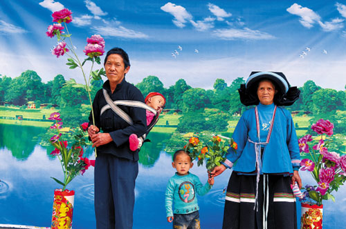 老人說(shuō)他叫楊華爸,他在廣東打工的兒子想念家中的兩個(gè)孩子,昨天恰逢集市,楊華爸與老伴帶著兩個(gè)孫子到常么照相館照相,以便寄給兒子。