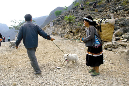 第一站,我到龍英,山路太難走了,摩托車(chē)根本不敢走。我只好靠雙腳,一路上,除了出村背水的群眾外,其他都是挑著小豬,或抱著貓狗,或牽著牛馬……