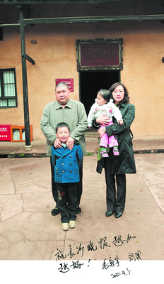 毛新宇說,這是首次提出毛澤東思想,特別具有歷史意義。說完,他很是欣慰地招呼家人在展示牌前合影。