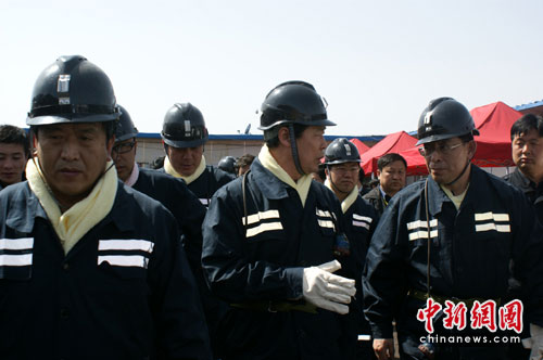 中新網4月2日電(高增平)4月2日,國家安監總局局長駱琳、山西省委書記張寶順、山西省省長王君等人兩次在華晉焦煤公司王家嶺透水事故搶險救援現場視察,分別在主井、風井內等處督促指導。