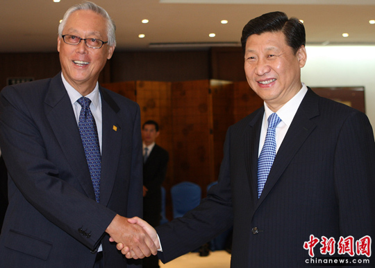 在會見吳作棟時,習近平表示,中新關系發展順利。去年,胡錦濤主席對貴國成功的國事訪問為中新關系注入了強大動力。新加坡是最早參與和支持中國對外開放的國家之一,中國在改革開放過程中借鑒了不少新加坡的有益經驗。中新蘇州工業園區開發建設16年來取得了令人矚目的成就。資政先生親自倡議建立的天津生態城項目啟動一年多來進展順利,成為中新合作的又一亮點。