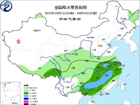 中新網(wǎng)4月13日電 中央氣象臺(tái)2010年4月13日17時(shí)發(fā)布未來三天全國天氣預(yù)報(bào):
