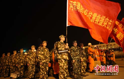 中新網(wǎng)4月15日電(王登峰 王志軍)今日凌晨3時,按照公安部命令,河南省消防總隊跨區(qū)域應急救援隊在總隊長夏夕嵐帶領下,從鄭州市新鄭機場乘飛機趕赴青海玉樹縣災區(qū)抗震救災。