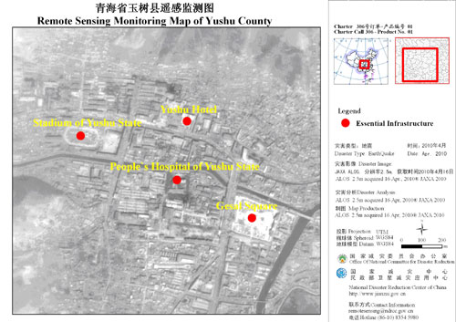 截至目前,通過國際減災(zāi)憲章(Charter)機制,已獲取災(zāi)前影像數(shù)據(jù)28景、災(zāi)后4景,為青海玉樹地區(qū)房屋倒損、基礎(chǔ)設(shè)施損毀、次生災(zāi)害等情況的評估工作提供了重要的數(shù)據(jù)基礎(chǔ),發(fā)揮了重要的決策支持作用。與此同時,向中國氣象局進行了共享。