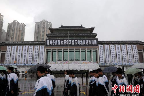 按照青海省政府昨日公告,今日上午10時整起,青海全省人民默哀三分鐘,屆時汽車、火車、輪船鳴笛,防空警報鳴響。西寧的悼念活動在新寧廣場舉行,玉樹的悼念活動在結古鎮舉行,其它地方舉辦規模適中的集中悼念儀式。(完)