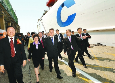 10日上午,兩岸之間唯一一艘獲批的常態(tài)化定期班輪——“中遠之星”輪成功從廈門港首航高雄港。省領(lǐng)導(dǎo)黃小晶、陳樺、葉雙瑜、蘇增添一行出席首航儀式并鑒證廈門港務(wù)局與高雄港務(wù)局、廈門海滄保稅港區(qū)與高雄自由貿(mào)易中心現(xiàn)場簽署合作協(xié)議。初夏的高雄港海天一色、潮平浪闊,黃小晶一行登船出海,考察這一臺灣最負盛名的天然良港。在與當?shù)亟煌ú块T負責人交談過程中,黃小晶說,“中遠之星”輪繼開通臺中港、基隆港航線之后,再增加高雄港航點,首次開通廈門至高雄港客貨滾裝航線,創(chuàng)新了海峽兩岸現(xiàn)有的海上運輸模式,實現(xiàn)了真正意義上的客貨直航。希望兩岸能夠攜起手來,致力于推動更多的直航班輪實現(xiàn)常態(tài)化運營,特別要爭取直航班輪與旅游精品線路和物流配送相結(jié)合,帶動臺灣南部與大陸之間在旅游業(yè)、農(nóng)產(chǎn)品供銷等方面更深入的交流,以實際行動為兩岸同胞多謀福祉。