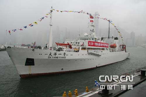 由于青島邊防檢查站提前兩天在內錨地為“大洋一號”的科學家和工作人員辦理了通關手續,所以今天“大洋一號”在十點停靠碼頭之后所有的工作人員可以直接下船通關了。大家對“大洋一號”比較熟悉了,它也是我國海洋科考的一個明星船。“大洋一號”科學考察船2005年從青島啟航先后跨越了太平洋、大西洋和印度洋,圓滿完成了我國首次的環球大洋科考。去年7月18日,“大洋一號”從廣州啟航,開始執行我國大洋科考第21航次的任務也是繼2005年首次環球科考之后的第二次環球的航行。