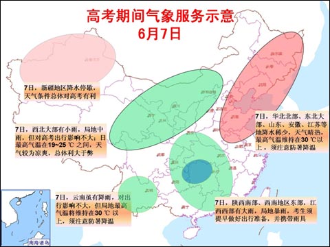 “中國氣象局將嚴密監視天氣變化,及時提供滾動預報服務。同時提醒廣大考生和家長,需關注臨近天氣預報,減少或避免天氣變化可能帶來的不利影響。”王秀文說。(卞赟)