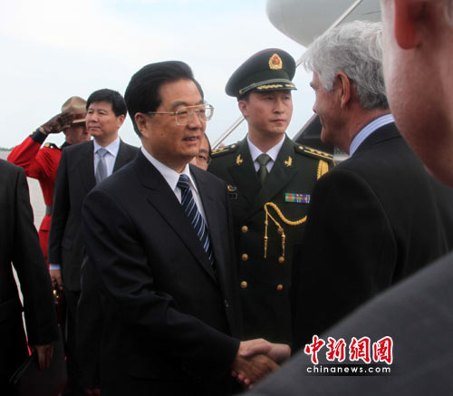 中新網渥太華6月23日電 (記者 張朔)經過13個多小時、跨越東西半球的長途飛行,中國國家主席胡錦濤乘坐的專機當地時間23日傍晚6時許平穩降落在渥太華國際機場。這是近5年來,胡錦濤再次對加拿大進行國事訪問。